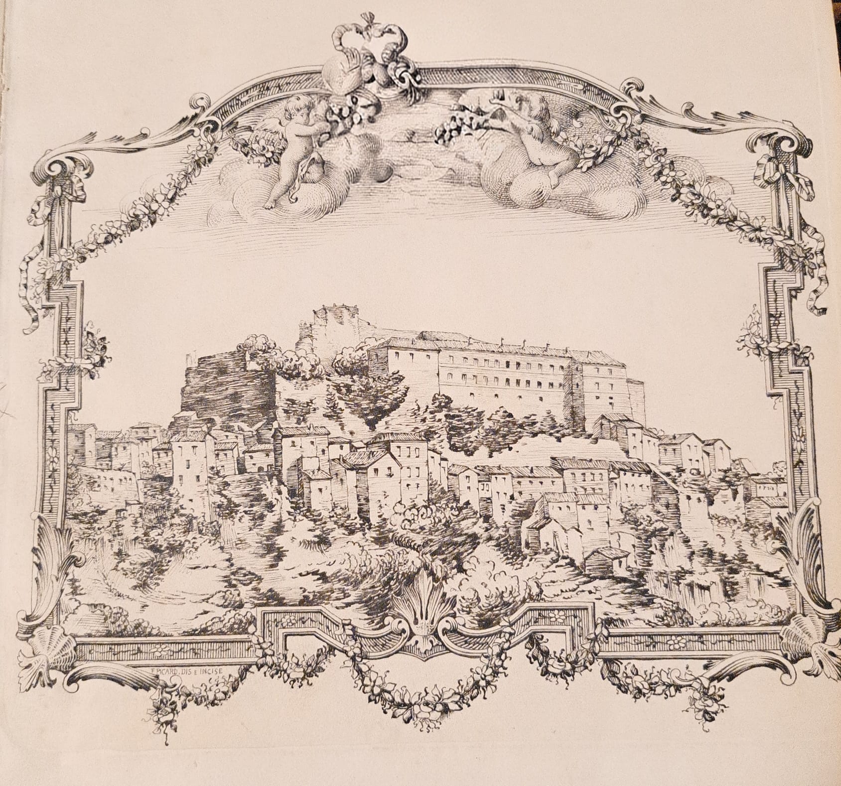 fig. 1 – Incisione su castello di Rocca Sinibalda dell’inizio del XX secolo. Collezione privata