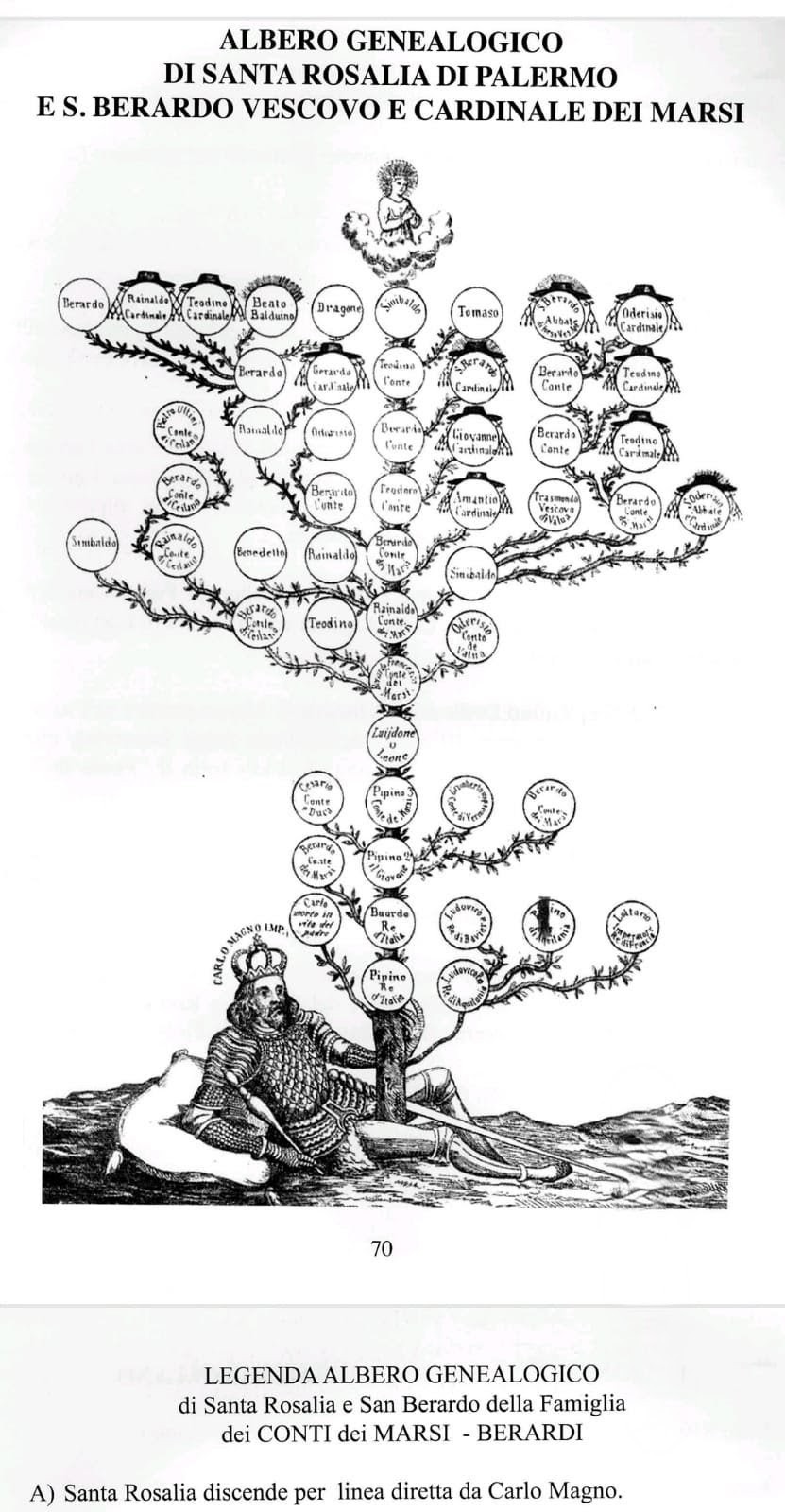 Quindi con chiarezza e decisione, l’autore afferma che “Sinibaldo, figlio di Teodino (fratello di San Berardo, Vescovo dei Marsi) è il padre di Santa Rosalia”. A questo punto può intravedersi della luce sulle relazioni parentali, per quanto intricate comunque appaiano.