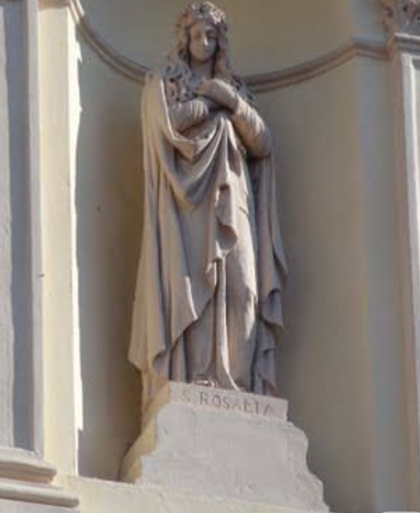 fig. 5 – Statua di S. Rosalia nella facciata della chiesa di S. Rosalia e S. Francesca Romana