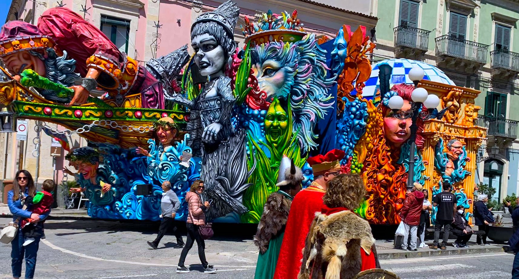 Arriva poi finalmente il giorno in cui la meravigliosa sfilata di carri tematici, ballerini e figuranti mascherati anima le stradine del borgo. Tantissimi colori, cibo e risate sono gli ingredienti che caratterizzano queste euforiche giornate.