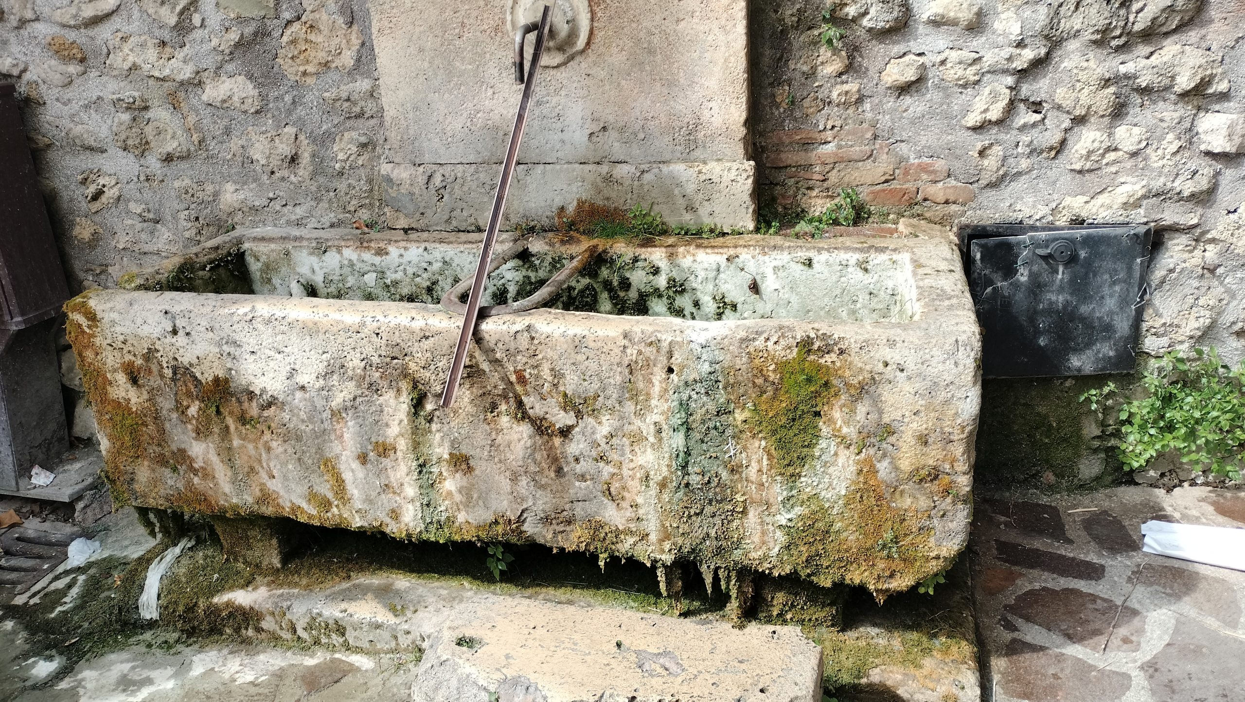 Si tratta di un solido sarcofago in travertino, dalle semplici forme squadrate che inducono a supporne la datazione tra il II e il III secolo dell’era cristiana, riutilizzato come vasca per il fontanile destinato agli usi promiscui, così come venivano stabiliti dagli Statuti Civici.