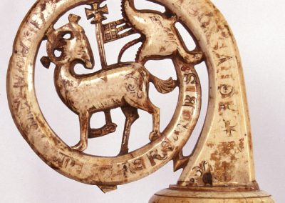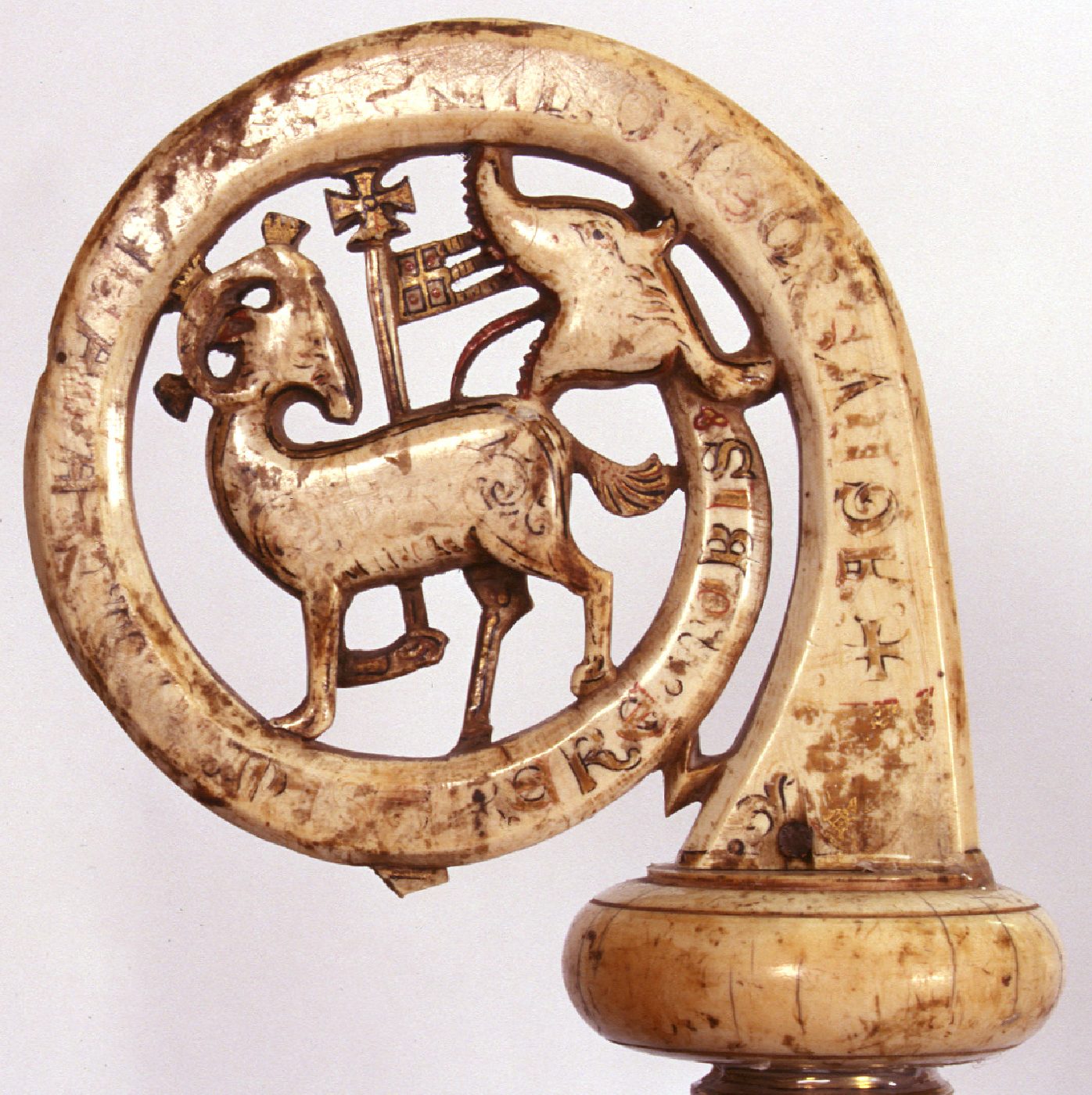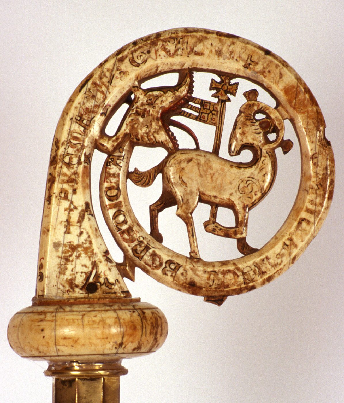 Nel basso Medioevo, i bastoni pastorali si impreziosirono nelle forme, nella decorazione e nel pregio dei materiali. In particolare, l’estremità ricurva assunse la forma e la dimensione di una spirale all’interno della quale furono incluse le figure simboliche dell’Annunciazione, dell’Agnus Dei, di San Michele Arcangelo in lotta con il drago, di Santi e di animali diversi.