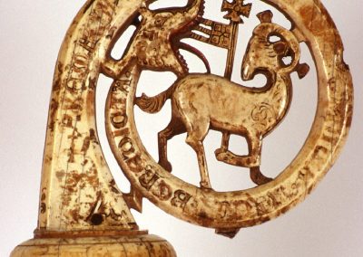 Di questo contesto culturale è espressione, di queste vicissitudini è testimone il riccio di pastorale in avorio inciso usato nelle principali solennità dai Vescovi reatini: si tratta di un raffinato lavoro d’intaglio realizzato da un anonimo artista di tradizione romana, che include la figura simbolica dell’Agnus Dei recante la croce ed il vessillo della resurrezione per mezzo della quale sconfigge il drago dell’apocalisse, all’interno della spirale sulle cui facce scorre l’iscrizione gotica: «Ave Maria gratia plena Dominus tecum Benedica» e «Agnus Dei qui tollis peccata mundi Miserere nobis».
