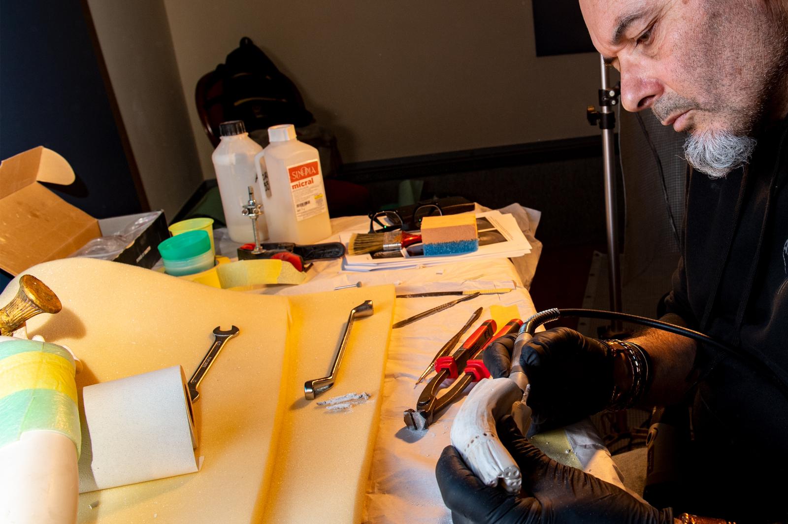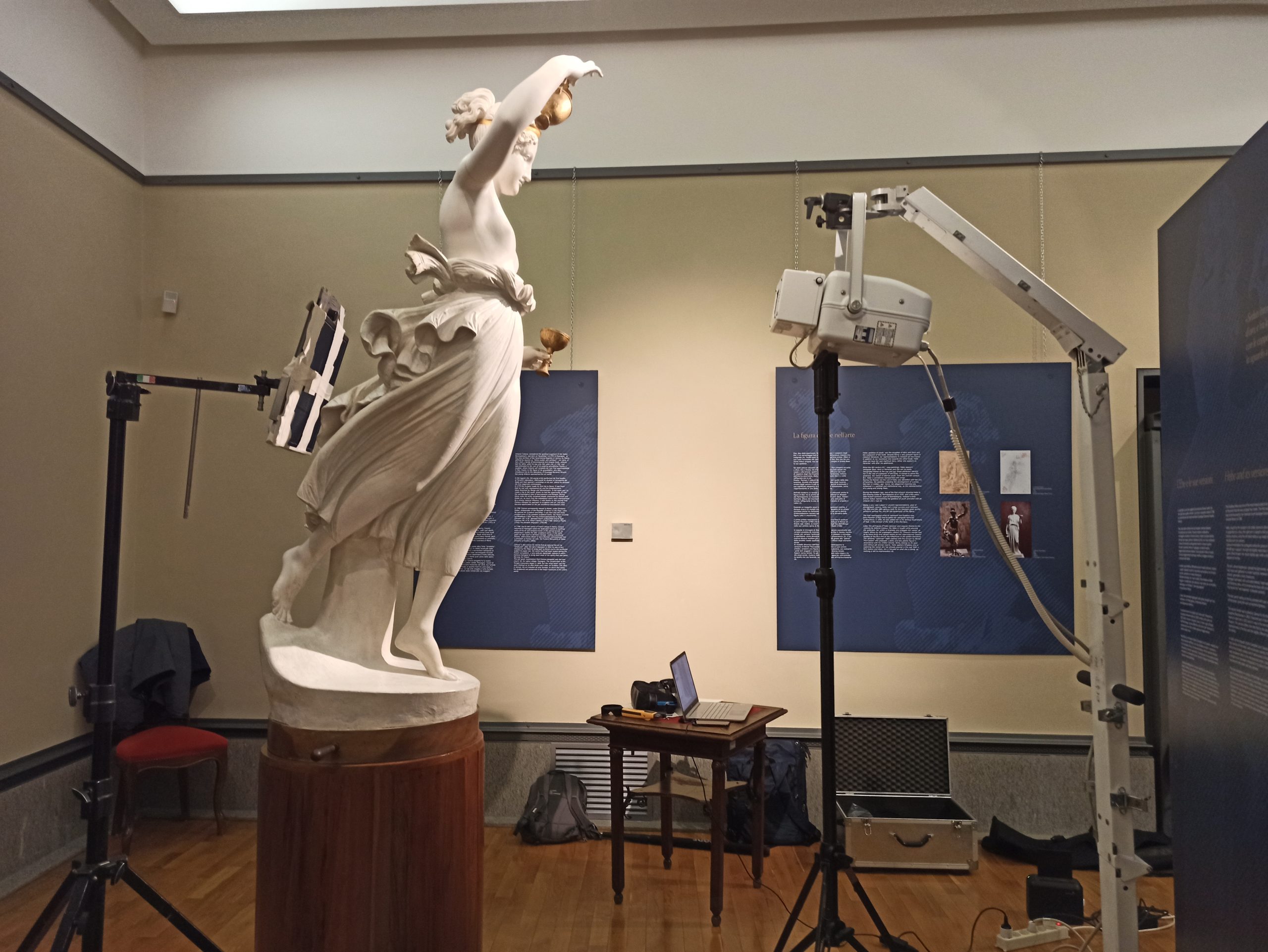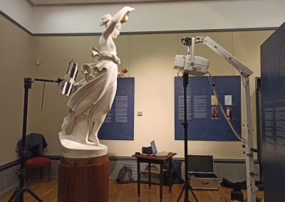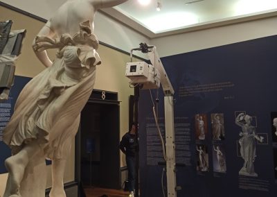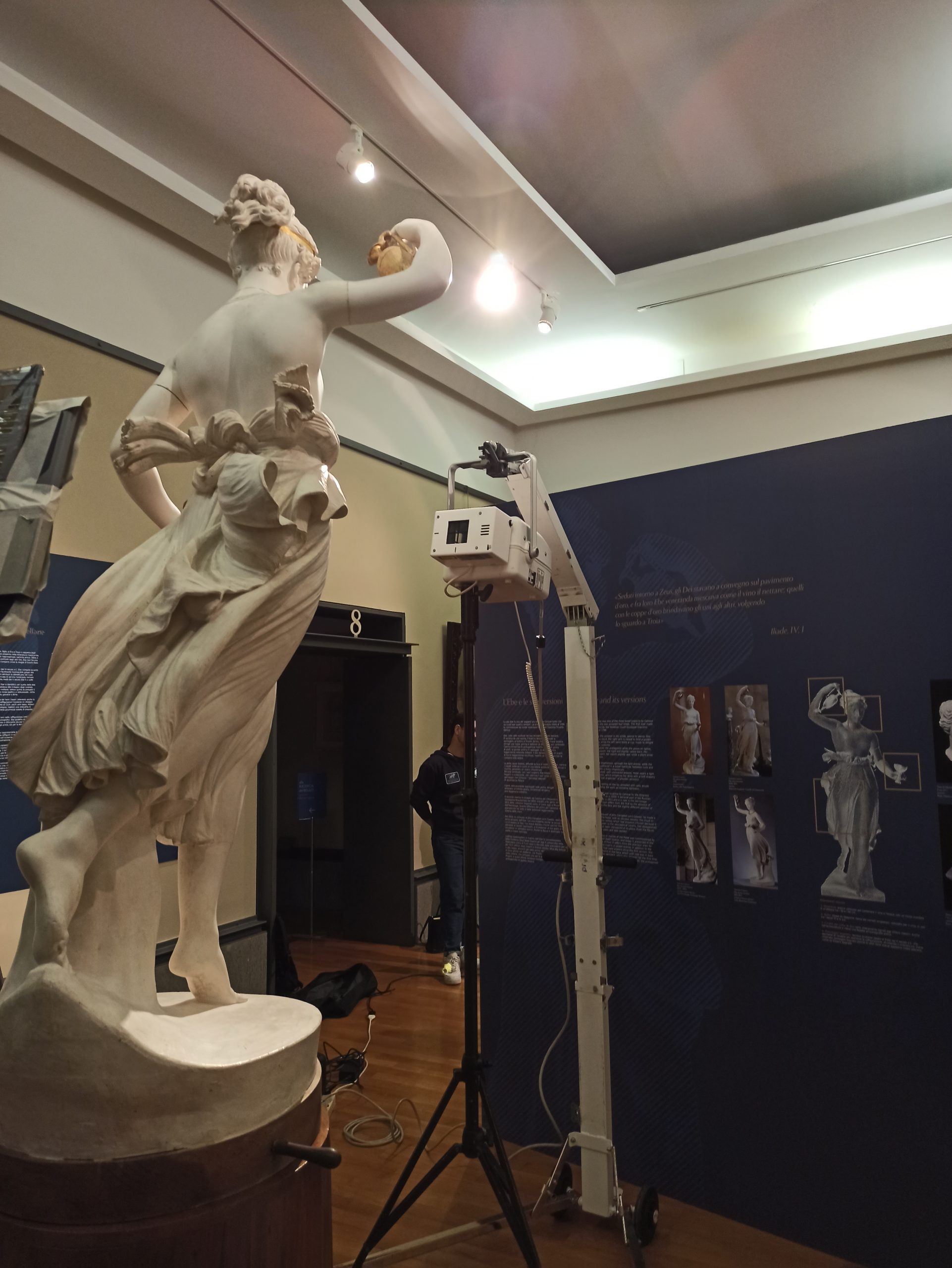 Proprio come per un essere vivente la statua è stata sottoposta ad indagini diagnostiche, in particolare radiografie fatte con strumentazioni elettromedicali, che hanno evidenziato il logoramento di fissaggi applicati nel braccio sinistro in interventi precedenti di circa 20 anni fa. Il restauratore ha quindi optato, sotto la vigilanza della Soprintendenza, al ripristino dell’articolazione creata dal Canova per la sua creatura. L’articolazione si muove dalla spalla, come in una persona, e quindi l’ancoraggio è stato effettuato sulla spalla attraverso l’applicazione di una spina metallica. E’ stato fatto un restauro conservativo, rimuovendo i fissaggi applicati in precedenza e restaurando l’originale articolazione, anche attraverso una chiavetta che regola l’angolatura dell’arto. Dopo la soluzione statica si è provveduto ad una pulitura che ha garantito la conservazione della patina, anche attraverso leggerissime acquarellature ove necessario.
