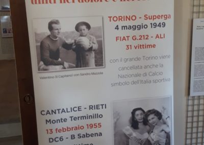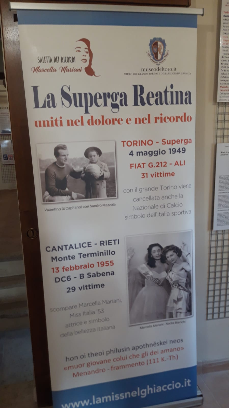 Grazie al giornalista Tito Stagno, il quale denomino detta tragedia “la Superga Reatina” a seguito di uno dei suoi primi servizi giornalistici,è stato possibile porre in data 8 maggio 2017 alla Basilica di Superga (Torino), ai piedi del mausoleo del grande Torino, un Totem commemorativo, tradotto in quattro lingue, a perenne ricordo di detta tragedia. Il 18 aprile 2018 la Saletta dei Ricordi ha formamente sancito il gemellaggio con il museo internazionale del grande Torino e della leggenda granata.