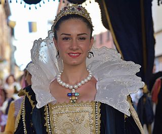 A Leonessa si svolge una rievocazione storica Rinascimentale Il Palio del Velluto con ben 600 figuranti in splendidi costumi per ricordare Margherita d’Austria figlia dell’Imperatore Carlo V e Signora di Leonessa