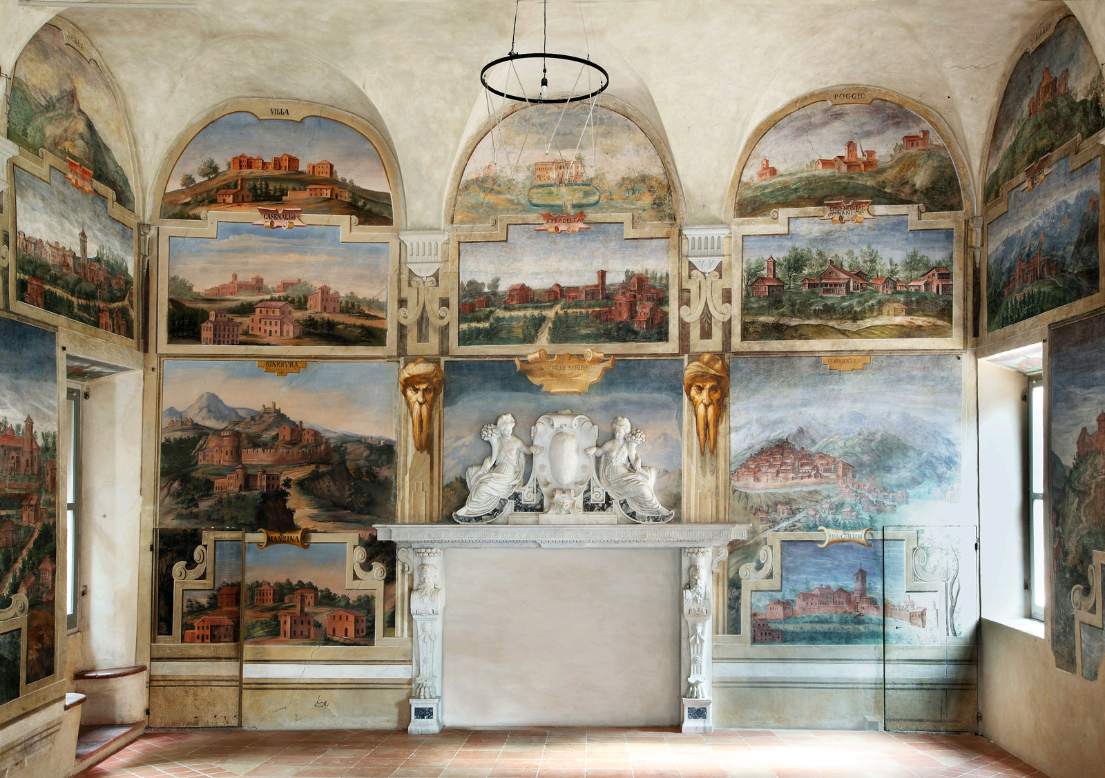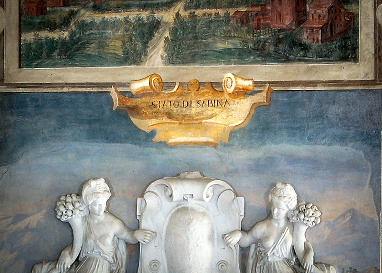 Nomina a senatore il 16/11/1882, deceduto il 13/6/1899. Sembrerebbe che alla detta data i feudi del c.d. Stato di Sabina siano rimasti sotto una stessa casata se pure siano venuti meno i diritti feudali. Degli affreschi fuori porta dei feudi Sabini non vi è traccia nelle varie pubblicazioni consultate, dove sono in evidenza in particolare quelli commissionati dai Mattei a Paul Bril riguardanti l’area turanense con pregiate vedute anche del castello di Rocca Sinibalda realizzato dai Cesarini, dove, come sopra ricordato, furono celebrate le nozze di Giovan Giorgio Cesarini con Clelia Farnese. Di Marco Pio di Savoia altresì non si trova menzione nelle varie pubblicazioni di storia locale che trattano i feudi ricompresi nello Stato di Sabina. Ma le scoperte sono sempre impreviste, come per gli affreschi del palazzo Orsini di Bomarzo (vedi precedente articolo sul sito) che rappresentano feudi sabini degli Orsini tra cui Colle Piccolo oggi Colle di Tora, che la Sovrintendenza ha in progetto di recuperare. Da notare che Vicino Orsini, signore di Bomarzo (1523-1585) risulta presente quando nel 1566 si stipulò il patto nuziale a Palazzo Cesarini.